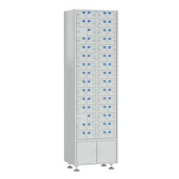- Абонентский почтовый ящик включает в себя 58 пронумерованных ячеек с индивидуальными замками типа «Cam Lock» и 2 большие ячейки внизу, каждая из которых имеет отдельный замок. В комплекте бирки для ключей.