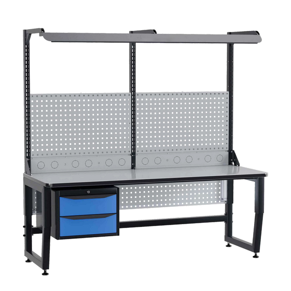- Его столешница изготовлена из МДФ и покрыта ESD-пластиком с антистатическими свойствами, обеспечивая безопасную работу с электронными компонентами.