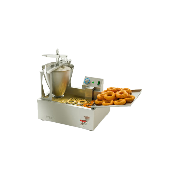 - Дозатор из нержавеющей стали формирует пончик необходимой массы для последующего его приготовления во фритюрной ванне.