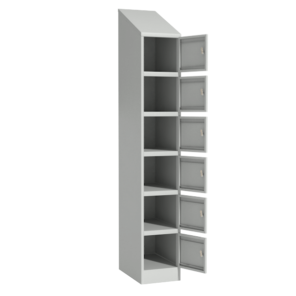 - Ячейки имеют 6 металлических дверец, запираемых на ключ.