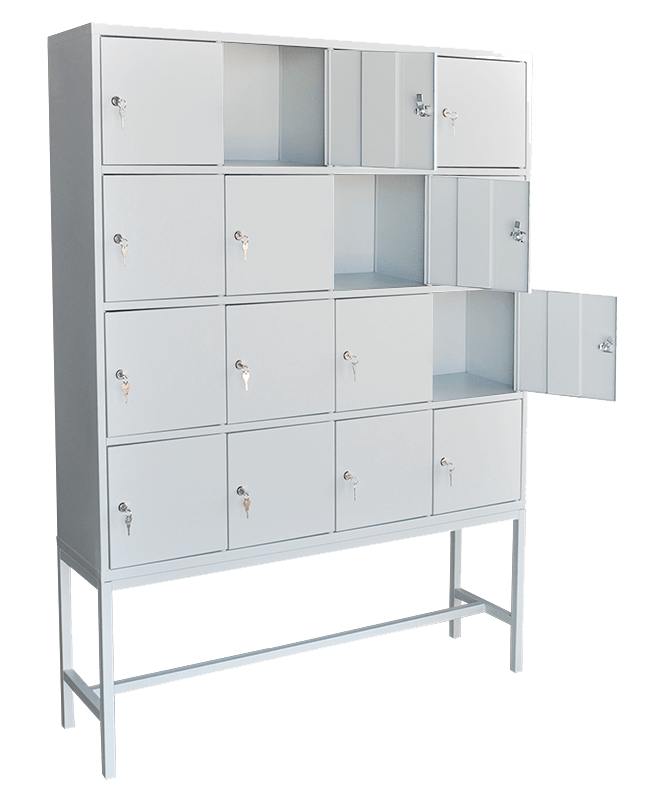 - Состоит из 16 ячеек, запирающихся на ключевой замок.