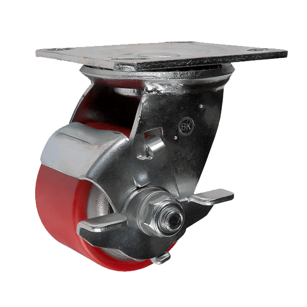 Колесо большегрузное поворотное с тормозом (полиуретан) диаметр 160 мм