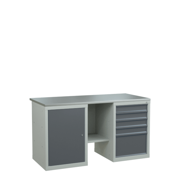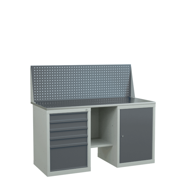 - Цвет корпусов верстака и тумбы – серый (RAL 7038), цвет дверец, экрана и ящиков – серый (RAL 7016).