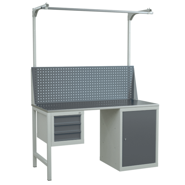 Верстак 1500 с экраном с консолями, подвесной тумбой и тумбой с полками