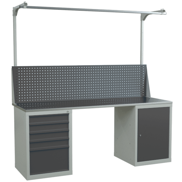 Верстак 2000 с экраном с консолями, выдвижной и распашной тумбами