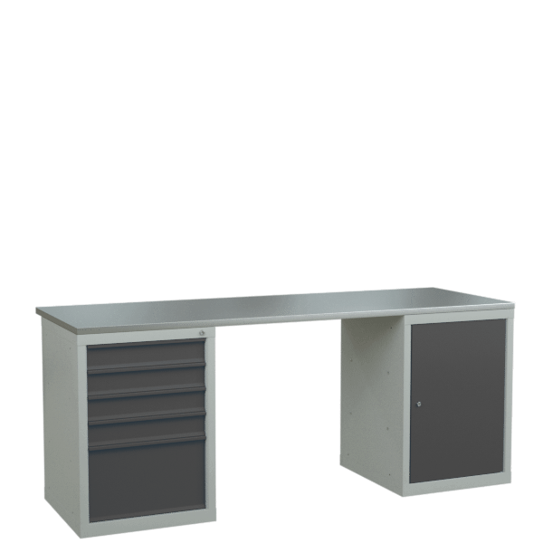 - Корпусы верстака и тумб выполнены в сером цвете (RAL 5012).