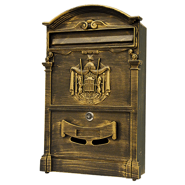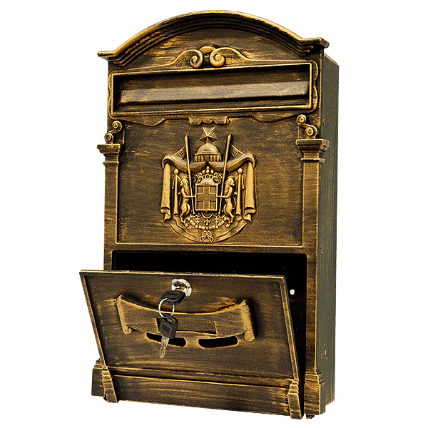 - Корпус почтового ящика металлический; окрашен порошковой краской глубокого бронзового оттенка, за счет чего создается эффект кованого почтового ящика.