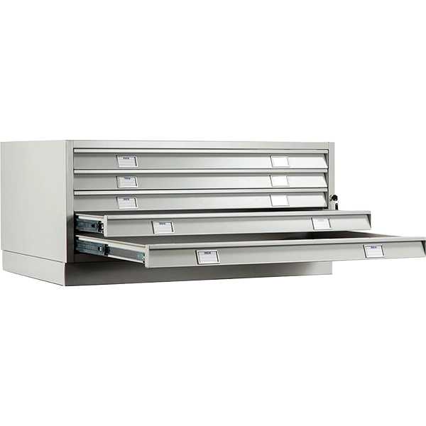 - Совместно с верхними и промежуточными секциями картотека позволяет увеличить общую вместимость модуля до 15 ящиков, что особенно удобно для архивов и проектных организаций.