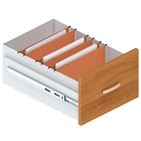 - Предназначен для хранения документов формата Foolscap/A4 (210x297 мм) в подвесных файлах (каждый документ отдельно), либо в папках типа "Корона".