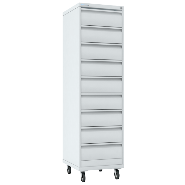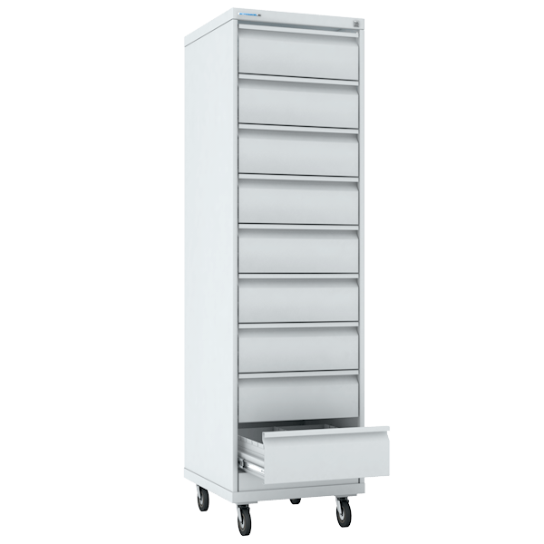 - Шкаф оснащен подставкой на колесах, что облегчает транспортировку.
