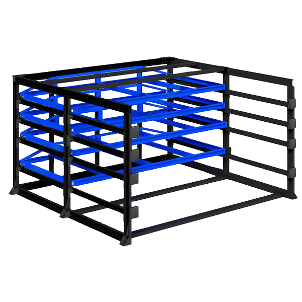 - Стеллаж без раздвижных ворот оснащается до пяти выкатных платформ, которые приобретаются отдельно, каждая выдерживает нагрузку до 2000 кг.