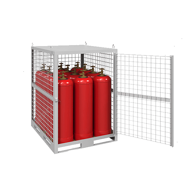 - Предназначена для хранения и транспортировки 12 пропановых баллонов объёмом 50 литров и диаметром 305 мм.