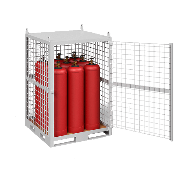 - Предназначена для хранения и транспортировки 9 пропановых баллонов объёмом 50 литров и диаметром 305 мм.