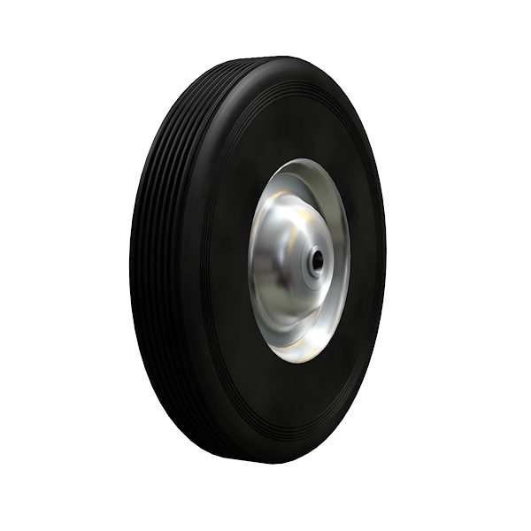 - Колеса промышленные с литой черной резиной и стальным прессованным цельным ободом отличаются хорошими амортизационными качествами, низким сопротивлением качению при плохих дорожных условиях.