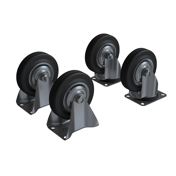 - В комплект поставки входят 2 поворотных и 2 неповоротных колеса.