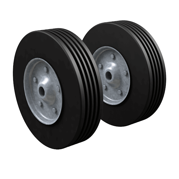 - Колёса из литой чёрной резины диаметром 200 мм.
