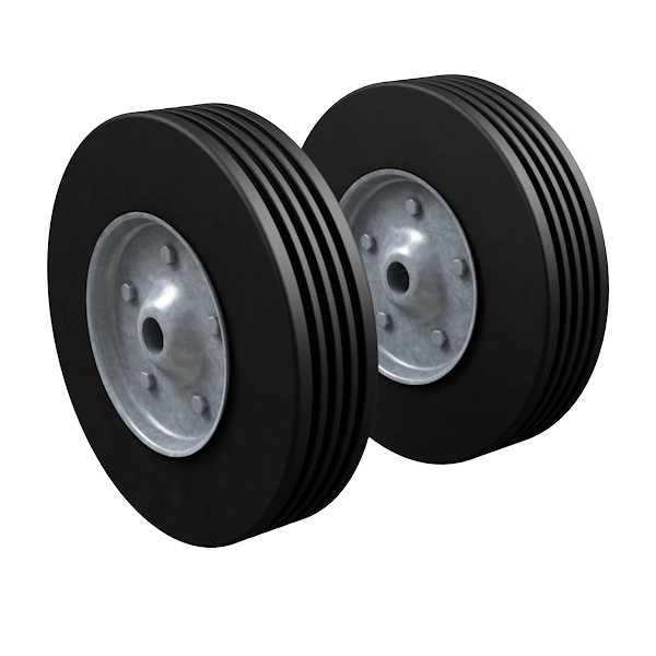 - Литые резиновые колёса промышленной серии Ø250 мм для двухколесных тележек.