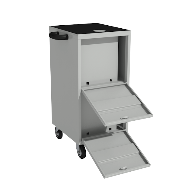 - Состоит из двух ярусов, один ярус вмещает 7 ноутбуков.