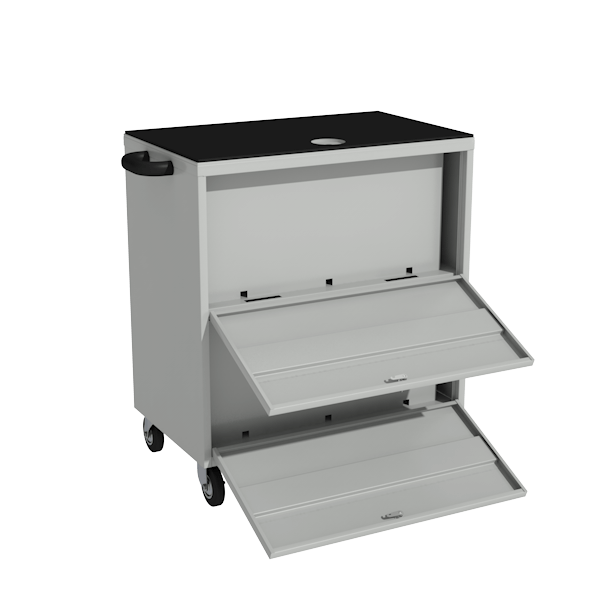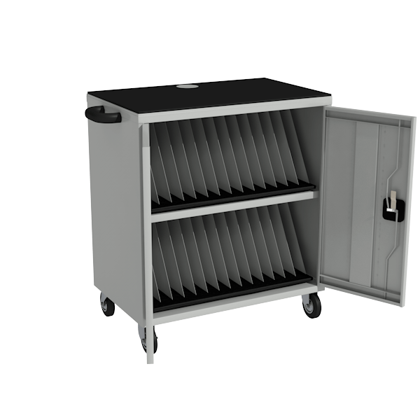 - Металлическая тележка предназначена для хранения, транспортировки и зарядки 30 ноутбуков.