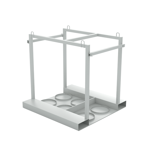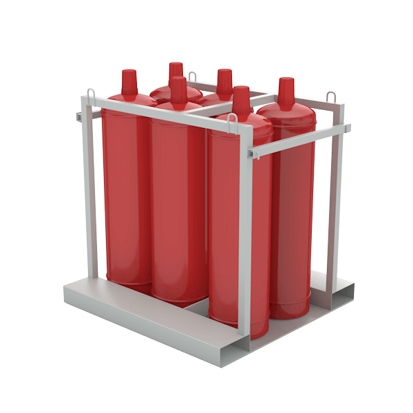 - Контейнер (палета) для 6 пропановых газовых баллонов для надёжного хранения и перемещения шести газовых баллонов на производстве.