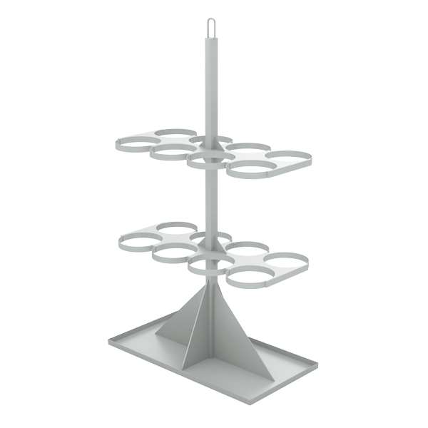 - Стойка оснащена ложементами для баллонов и петлёй для транспортировки; ложементы оборудованы хомутами для надёжной фиксации баллонов.