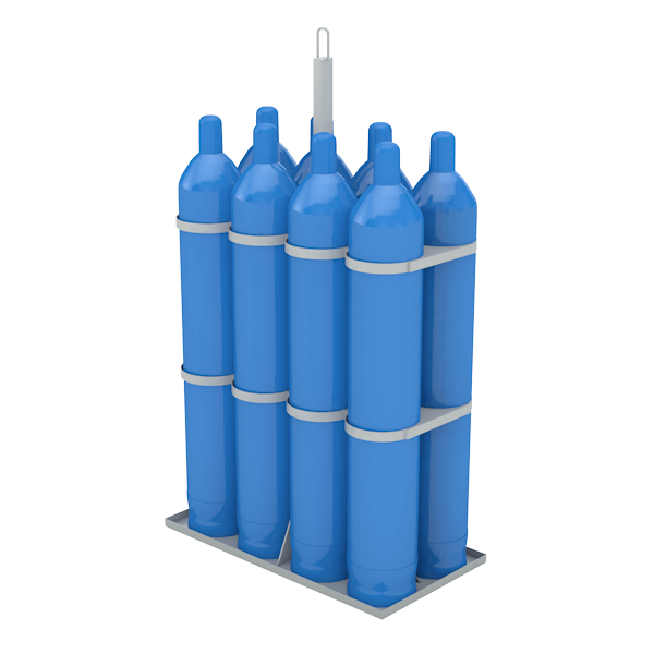 - Контейнер (палета) для 8 кислородных газовых баллонов подходит для баллонов объемом до 40 литров.