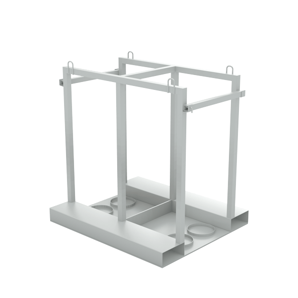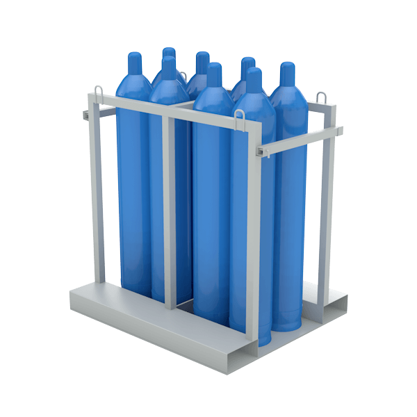 - Контейнер (палета) для 8 кислородных газовых баллонов для надёжного хранения и перемещения восьми газовых баллонов на производстве.