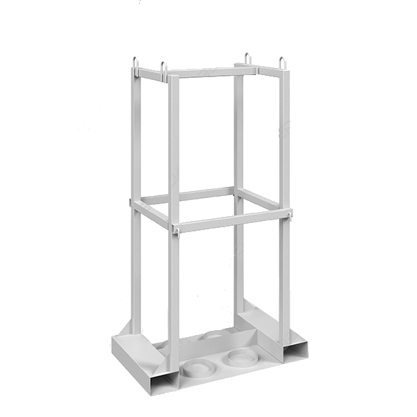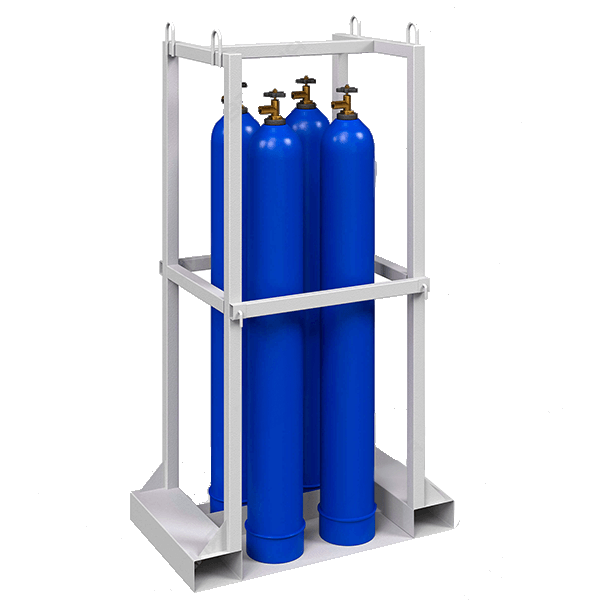 - Предназначен для хранения на складских и производственных территориях 4 кислородных баллонов объёмом 40 литров и диаметром 230 мм.