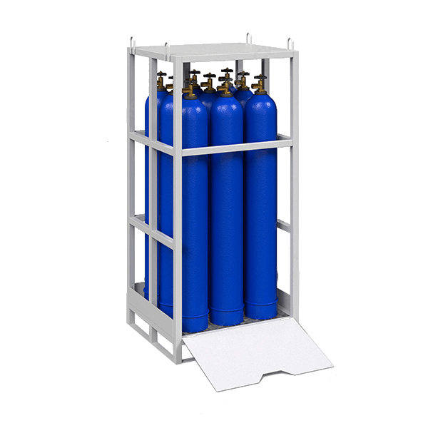 - Предназначен для хранения и транспортировки на складах и производствах 9 кислородных или аналогичных по габаритам баллонов.