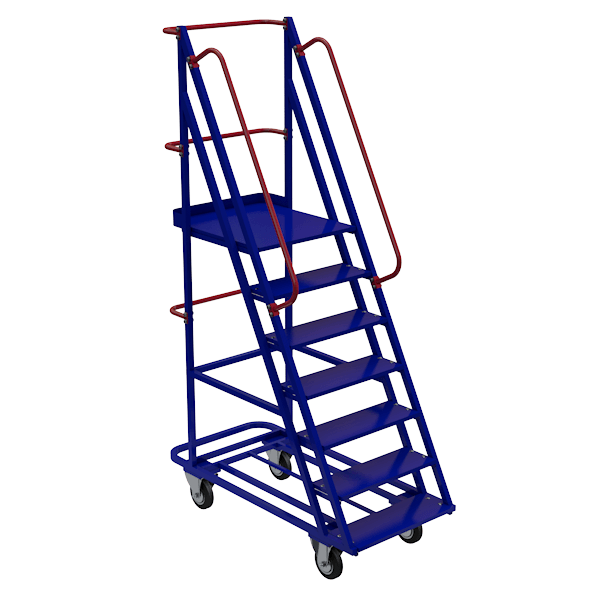 - Поверхности окрашены в контрастные цвета: полимерная порошковая краска RAL 5002 (синий), поручни и рабочая площадка RAL 3020 (красный).