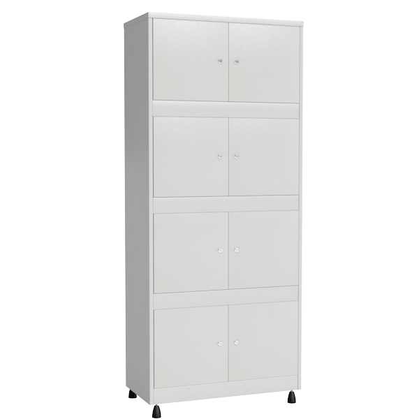 - Шкаф оборудован 8 запираемыми ячейками для ограничения доступа.