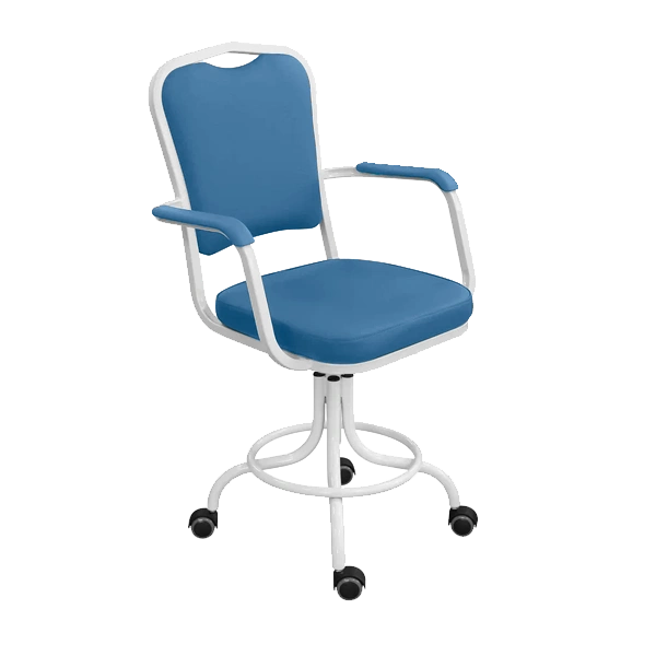 - Кресло лабораторное на винтовой опоре КР02-1, обивка синяя, каркас белый идеально подходит для использования в лабораториях, медицинских учреждениях и офисах, где важен комфорт и надежность мебели.