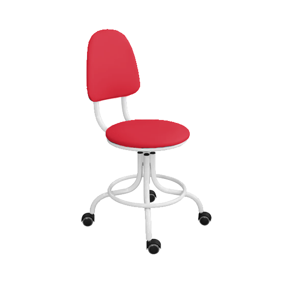 - Кресло на винтовой опоре КР01, цвет красный, каркас белый — эргономичное и яркое решение для медицинских кабинетов, лабораторий, офисов и других рабочих пространств.