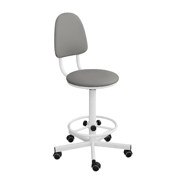 - Кресло на винтовой опоре с регулируемой опорой для ног КР02/К, цвет светло-серый, каркас белый — надежное и эргономичное решение для медкабинетов, лабораторий, салонов красоты и учебных аудиторий.