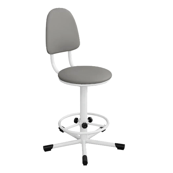 - Кресло на винтовой опоре с регулируемой опорой для ног КР02, обивка светло-серая, каркас белый предназначено для использования в медицинских учреждениях, лабораториях и салонах красоты.