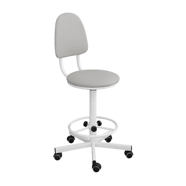 - Кресло на винтовой опоре с регулируемой опорой для ног КР02, цвет белый, каркас белый — функциональное и эргономичное решение для медицинских кабинетов, лабораторий, косметологических и рабочих зон.