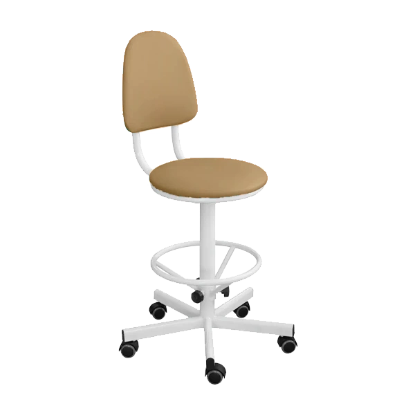 - Промышленный стул КР03/К (на колесах), обивка бежевая, каркас белый — это прочная и комфортная модель, идеально подходящая для производственных и рабочих помещений, а также офисов с высокой нагрузкой.