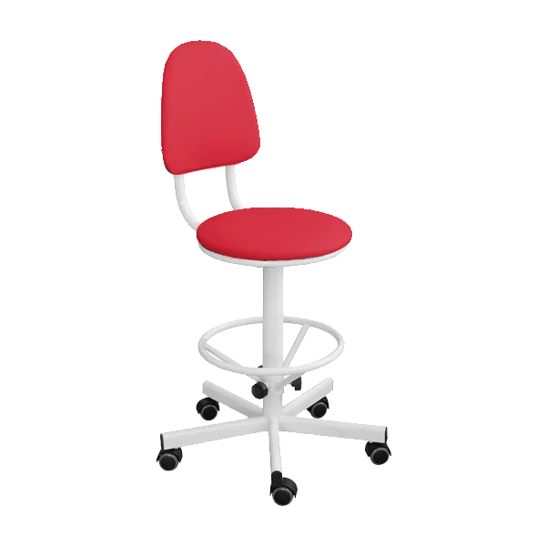 - Промышленный стул КР03/К (на колесах), обивка красная, каркас белый — это надежная и эргономичная модель для комфортной работы в лабораториях, мастерских, медкабинетах и на производстве.