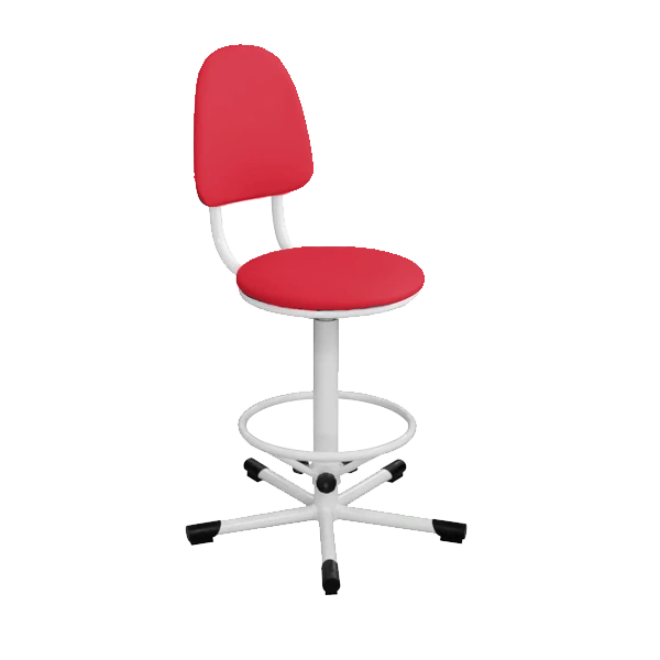 - Промышленный стул КР03, обивка красная, каркас белый — надежное и эргономичное решение для рабочих зон, лабораторий, мастерских и медицинских учреждений.