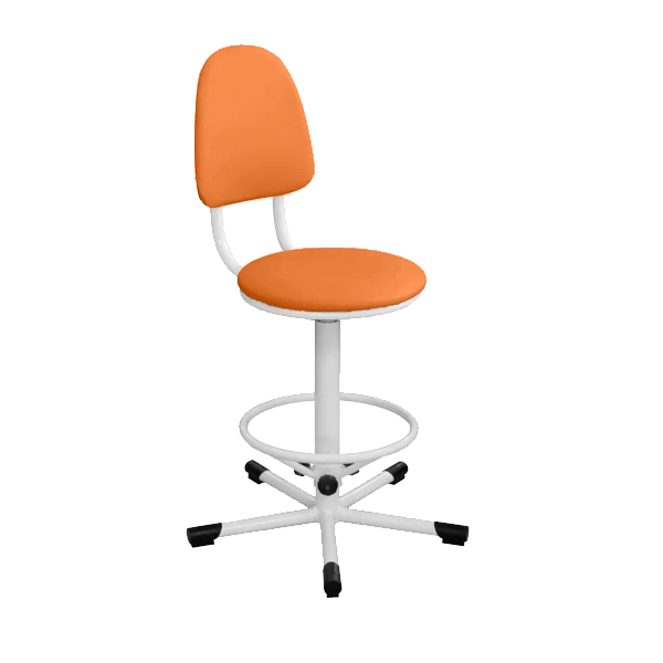 - Промышленный стул КР03, обивка оранжевая, каркас белый — удобная и функциональная модель для рабочих пространств, лабораторий, производственных и медицинских помещений.