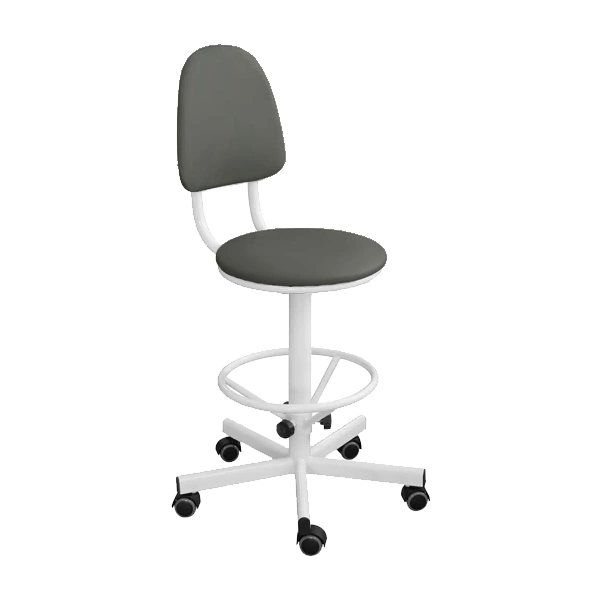- Промышленный стул КР03/К (на колесах), обивка серая, каркас белый — это удобное и функциональное решение для лабораторий, производственных помещений, мастерских и других рабочих зон.