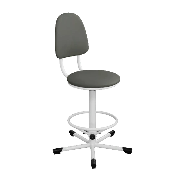 - Промышленный стул КР03, обивка серая, каркас белый — практичная и надёжная модель для производственных помещений, лабораторий, медицинских учреждений и мастерских.