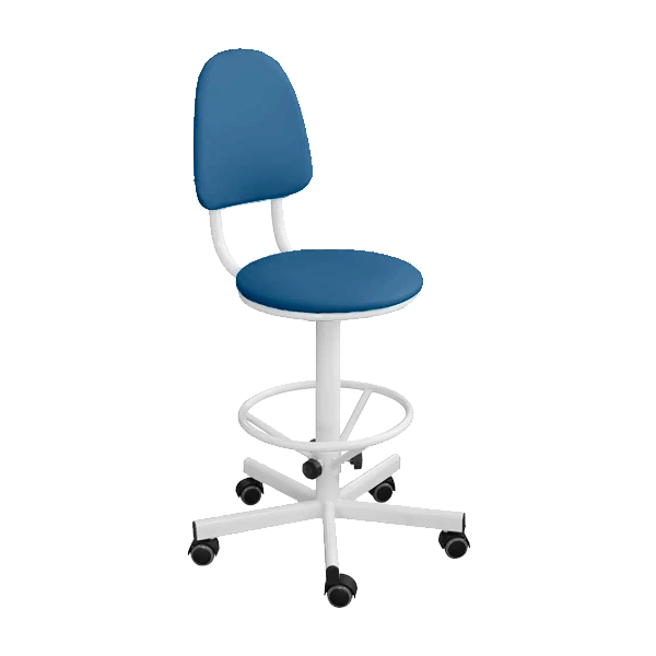 - Промышленный стул КР03/К (на колесах), обивка синяя, каркас белый — удобное и надежное сиденье для производственных, лабораторных и технических помещений, где важны мобильность, прочность и комфорт.
