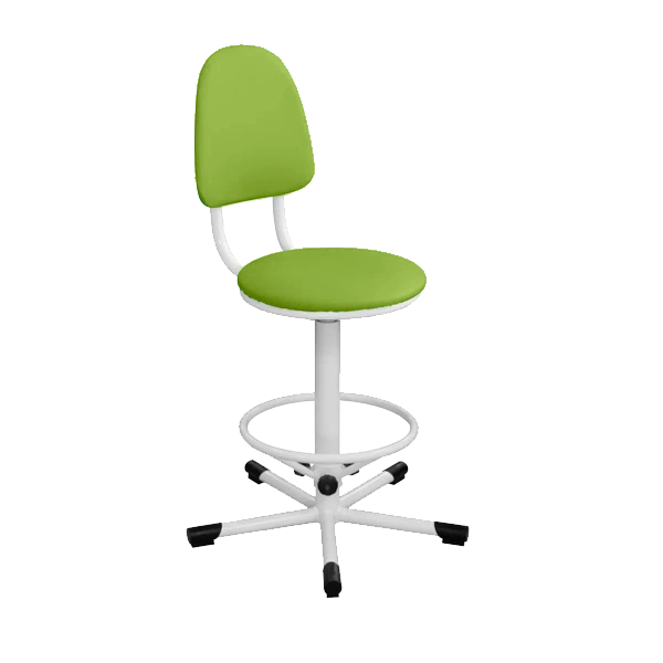 - Промышленный стул КР03, обивка светло-зеленая, каркас белый — эргономичное сиденье для оснащения лабораторий, медицинских кабинетов, производственных и рабочих помещений.