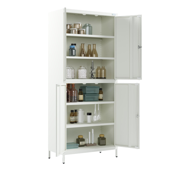 - Шкаф выполнен из прочного металла с белым порошковым покрытием (RAL 9016), устойчивым к воздействию влаги, дезинфицирующих средств и коррозии.