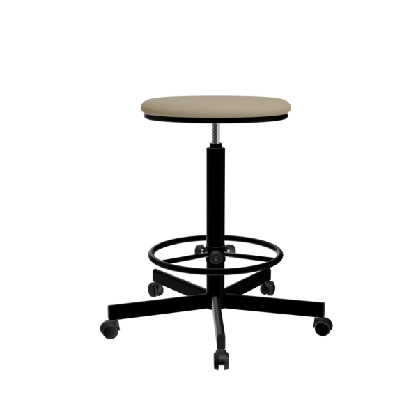 - Табурет на винтовой опоре и колесах обивка кремовая Т02/К каркас черный – функциональная и стильная мебель для медицинских кабинетов, лабораторий, салонов красоты и офисов.