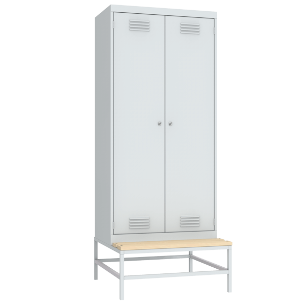 Шкаф для одежды офисный на подставке с деревянной скамьей