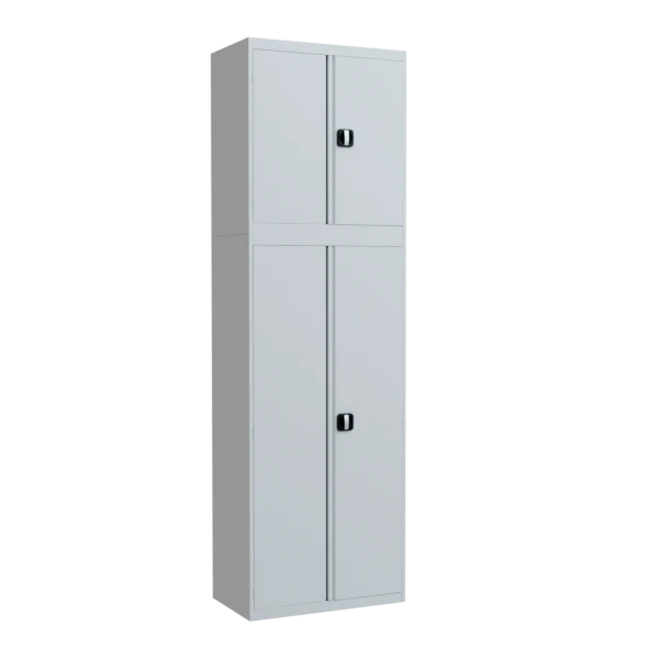- Основной шкаф укомплектован тремя регулируемыми по высоте полками с возможностью установки дополнительной для увеличения количества уровней хранения.