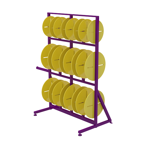 - Кабельный стеллаж представляет собой распределительную стойку для хранения двенадцати бухт с кабелем, проводом или тросом на технологически барабанах.