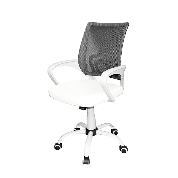 - Белые пластиковые подлокотники обеспечивают дополнительную поддержку и удобство в процессе работы.